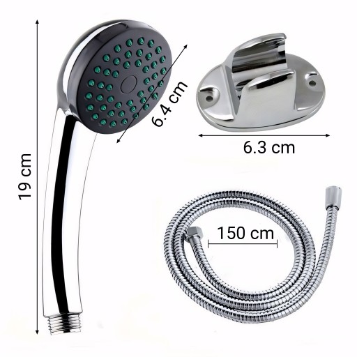 Głowica prysznicowa charakteryzuje się kompaktowymi wymiarami, co sprawia, że doskonale sprawdza się nawet w ograniczonych przestrzeniach. Dzięki temu jest idalna do mniejszych kabin prysznicowych. W zestawie znajduje się wąż natryskowy o długości 150 cm, co gwarantuje nie tylko wygodę, ale również ergonomiczność podczas kąpieli. Ta długość daje większą swobodę ruchu podczas kąpieli. Komplet uzupełnia uchwyt do zamocowania słuchawki przy ścianie.