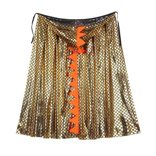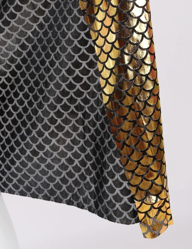 - Złoty Blask: Peleryna wykonana jest z wysokiej jakości materiału, który mieni się złotym blaskiem, przyciągając uwagę i dodając luksusowego akcentu do Twojego wyglądu.