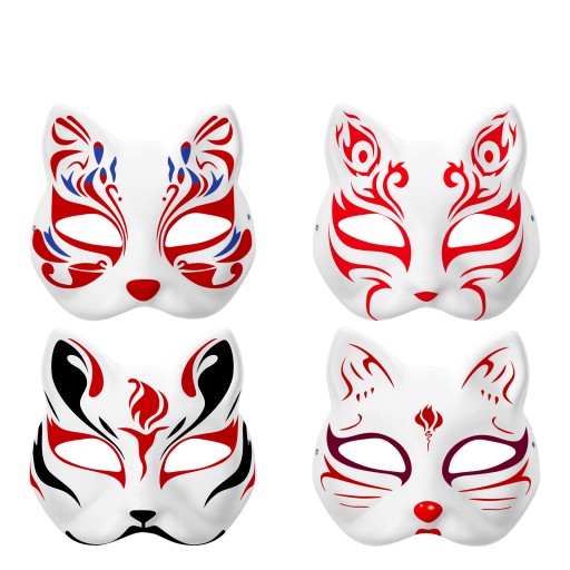 Wyglądem te maski przypominają kota, z widoczną częścią oczu wydrążoną.