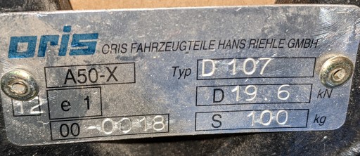Produkt: belka haka holowniczego, "leżak" magazynowy, zdjęcia przedstawiają sprzedawaną część. Komplet z zaczepem/hakiem Oris A50-X D-107 19,6kN oraz z gniazdem.