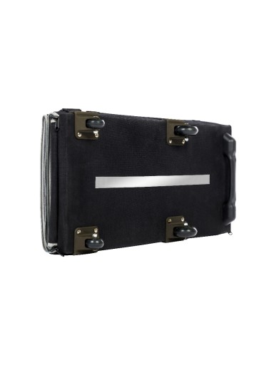 Ta torba transportowa Brompton Travel ma wzmocnione panele, które zapewniają lepszą ochronę roweru podczas transportu, a cztery kółka typu coaster zapewniają wyjątkową zwrotność nawet po spakowaniu. Zdejmowany pasek na ramię jest wyściełany dla dodatkowego komfortu podczas noszenia, a po złożeniu składa się do kompaktowego i przenośnego opakowania. Wewnętrzna kieszeń zapinana na zamek zapewnia dodatkową przestrzeń do przechowywania akcesoriów.