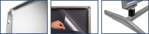 - OWZ: Otwórz, Włóż, Zamknij. Ramkowy system umożliwia prosty montaż twojej reklamy.