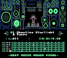 Ciekawy kartridż, zawierający dwie muzyczne pozycje: `8 bit Music Power` oraz `8 bit music power final`.