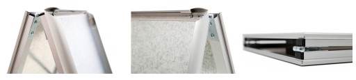 - KONSTRUKCJA: ALUMINIUM Anodowane + Tworzywo sztuczne (osłona na plakat z filtrem UV, który zapobiega utraty kolorów na wydruku)