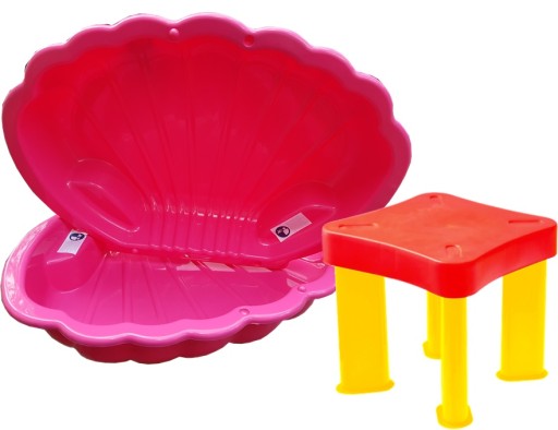 Dwuczęściowa piaskownica MUSZELKA z taboretem
