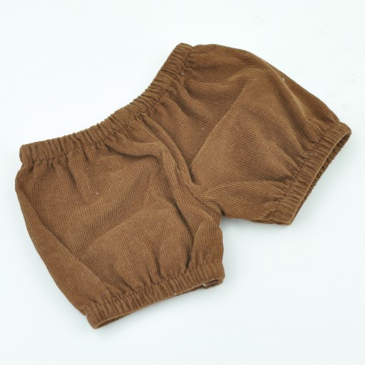 - Spodenki typu bloomers z brązowego sztruksu, z gumką w pasie