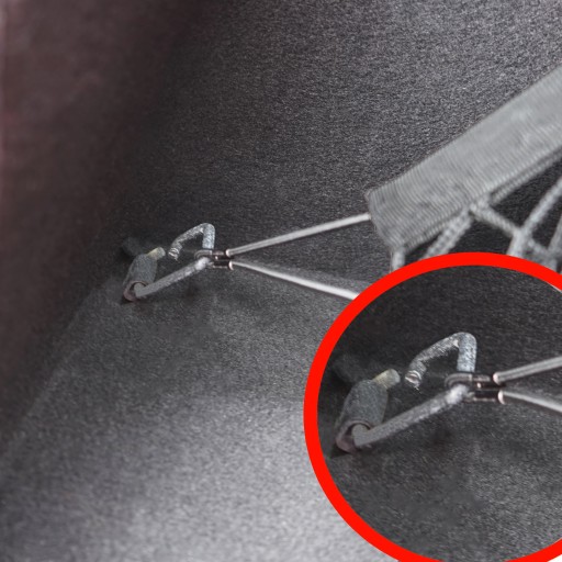 ✔️ 4 x haki umożliwiające montaż siatki przy wykorzystaniu fabrycznych miejsc montażowych w bagażniku Twojego samochodu