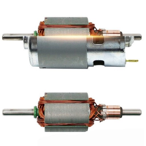 Typowe silniki prądu stałego DC składają się z następujących podzespołów: