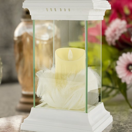 БОЛЬШОЙ СВЕЧА-ФОНАРЬ + СВЕЧА С ДВИЖУЩИМСЯ ПЛАМЕНЕМ + ПЕРЬЯ для ДЕТСКОЙ МОГИЛЫ