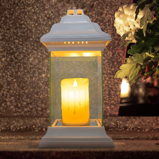 Znicz wykonany został z transparentnego szkła, podstawa z tworzywa sztucznego. Przystosowany do różnych rozmiarów wkładów, ze stabilną podstawą i daszkiem zabezpieczającym przed wiatrem.