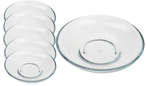 Komplet 6 spodków wykonanych ze szkła świetnie sprawdzą się pod szklanki czy bulionówki. Zrobione z grubego bezbarwnego szkła są niezwykle trwałe i posłużą nam przez długie lata.