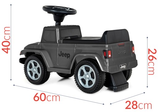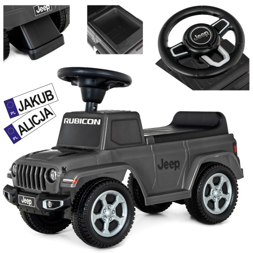 - wszystkie elementy jeździka odpowiadają tym z prawdziwego modelu Rubicon. Wysoka jakość tworzywa jest gwarancją długoletniej bezproblemowej eksploatacji.