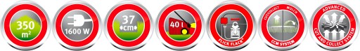 - Szerokość koszenia — 37 cm