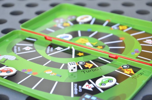 Jak grać: Uczestnicy wybierają po jednym samochodzie. Rozgrywkę zaczyna najmłodszy z uczestników, rzuca kostką i przemieszcza swój samochód o wyrzuconą ilość pól. Kiedy trafisz na pole "turbo", masz szczęście i skaczesz do przodu, tyle pól ile wyznaczono. Uważaj na pole "dangerous curve", kiedy na nie trafisz musisz się cofnąć o tyle pół ile wyznaczono. Trafienie na pole przeciwnika powoduje powrót na start. Wygrywa ten kto pierwszy dotrze do pola "trophy". Można tam trafić tylko wyrzucając dokładną brakującą ilość pól do przejścia. Jeśli wyrzucisz więcej niż potrzebujesz, musisz cofnąć się o tę liczbę oczek.