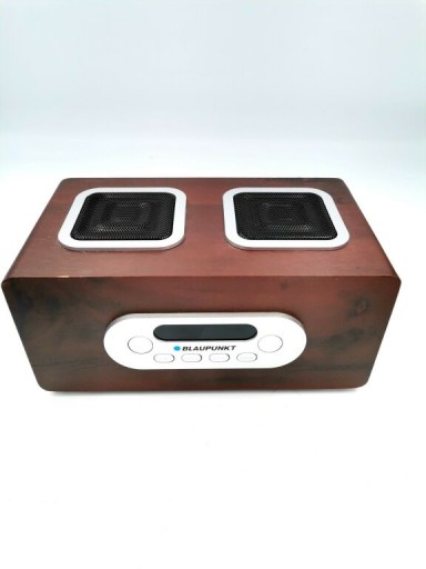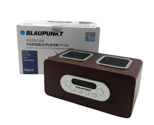 Blaupunkt PP5BR to kompaktowy radioodtwarzacz wykonany w stylu retro. Urządzenie zostało wyposażone w dwa głośniki o mocy 1,5 W oraz wyjście słuchawkowe. Dzięki zastosowaniu wejścia na kartę SD możesz odtwarzać w urządzeniu pliki dźwiękowe zapisane również w popularnym formacie mp3. Radioodtwarzacz został także wyposażony w czytelny wyświetlacz z zegarem oraz funkcję radia z pamięcią do 60 stacji. Wraz z urządzeniem w zestawie znajduje się pilot oraz teleskopowa antena radiowa.