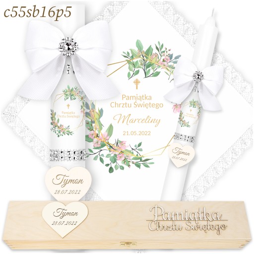- owinięcie materiałem satynowym z napisem "Pamiątka Chrztu Świętego",
