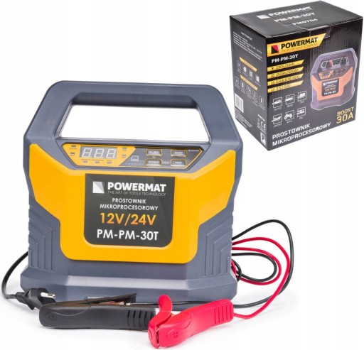 Wysokiej jakości automatyczny i precyzyjny mikroprocesorowy prostownik akumulatorowy POWERMAT PM-PM-30T świetnie sprawdza się w profesjonalnych serwisach i warsztatach samochodowych jak i w przydomowych garażach. Urządzenie może ładować prądem o napięciu 12V i 24V.
