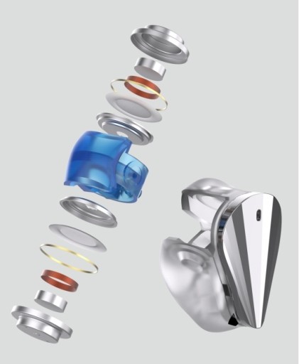 Nowy, naukowo zaprojektowany, przeciwstawny poziomo, podwójny dynamiczny moduł przetwornika dodatkowo demonstruje zalety hybrydowych słuchawek w dynamice basów.