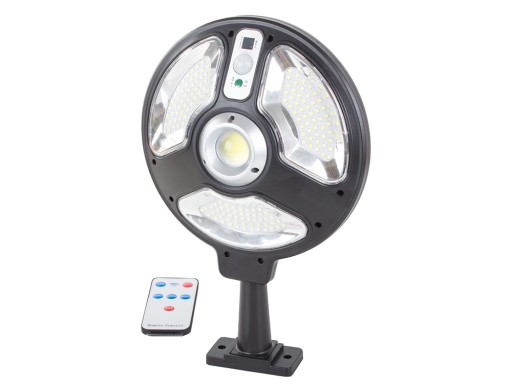 Wysokiej jakości lampa solarna to urządzenie zasilane z panelu słonecznego co gwarantuje oświetlenie bez dodatkowego źródła zasilania. Wyposażona została w bardzo jasny panel 150 punktów LED o mocnym strumieniu światła.
