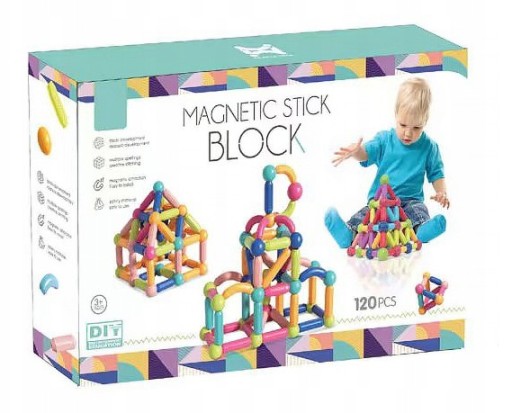 DUŻE KLOCKI MAGNETYCZNE EDUKACYJNE DLA DZIECI - MEGA ZESTAW 120 elementów!