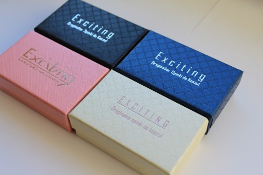 - Zestaw spinek jest zapakowany w okazałe i specjalnie dedykowane do nich pudełko o wymiarach ok. 8 x 8 x 4 cm