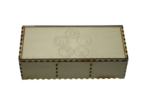 Pudełko na karty dopasowane wymiarami do formatu Magic the Gathering, razem z grubymi koszulkami. Mieści 3 grube decki i garść akcesoriów.