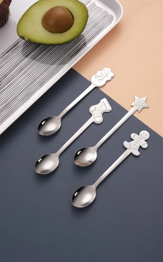 Креативный рождественский набор посуды из стальной ложки, десертное мороженое, кофе