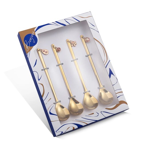 Набор рождественских ложек и вилок из 4 предметов, посуда из нержавеющей стали для рождественской елки с изображением лося