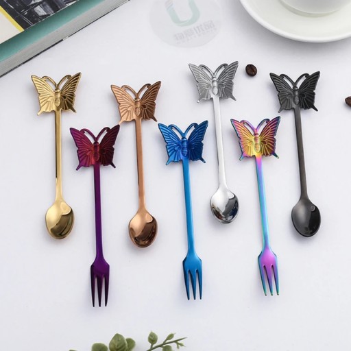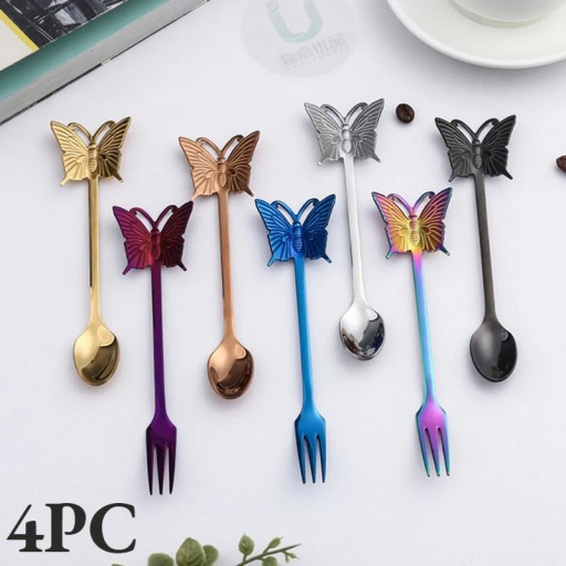 4 шт., новая чайная ложка и вилка «Бабочка», креативная барная посуда из нержавеющей стали