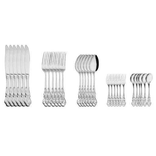 Totally 30 pieces a set, Knife + Spoon + Fork + coffee Spoon+Coffee Fork .