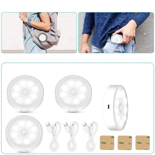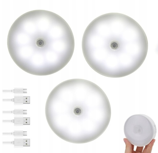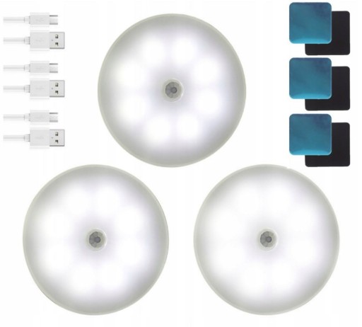 СВЕТОДИОДНАЯ ЛАМПА С ДАТЧИКОМ ДВИЖЕНИЯ ХОЛОДНЫЙ БЕЛЫЙ НОЧНИК 3ШТ ДЛЯ ЛЕСТНИЦЫ