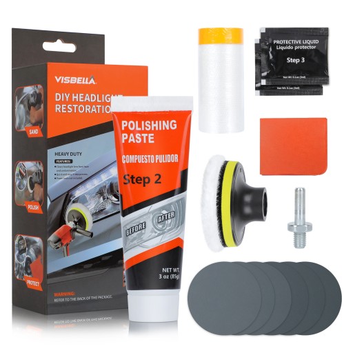✅ Kompletny zestaw przeznaczony do samodzielnej odnowy lamp samochodowych. Przeznaczony do polerowania mechanicznego z użyciem wiertarki / wkrętarki / polerki