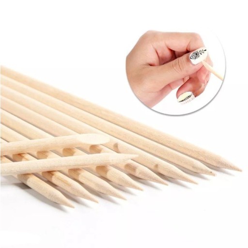 Wysokiej jakości, jednorazowe patyczki różane do profesjonalnej stylizacji paznokci. Patyczki są dwustronne, dzięki czemu można je stosować zarówno do odsuwania skórek, jak również do nakładania drobnych ozdób, a także mieszania żeli na płytce. Wykonane z wysokiej jakości drewna wyróżniają się odpowiednią twardością i delikatnością – ich stosowanie jest całkowicie bezpieczne dla płytki paznokcia.