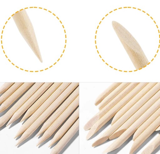 Patyczki są odpowiednio twarde (nie rozwarstwiają się), ale jednocześnie delikatne – odsuwają skórki bez szkody dla płytki paznokcia.