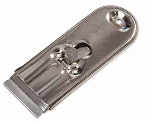 Solidny i wytrzymały niklowany korpus pozwoli czyścić różne powierzchnie bez obawy o jego uszkodzenie. Skrobak jest mały i zgrabny. Dlatego dobrze leży w dłoni a praca z nim będzie przyjemna i pozwoli dotrzeć do najmniejszych zakamarków.