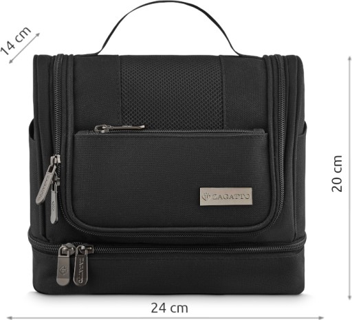 Szukasz podręcznego organizera, który pomieści wszystkie Twoje kosmetyki? Nasza kosmetyczka Zagatto® z kolekcji Voyager, to wybór doskonały! Już nie musisz się martwić o brak miejsca w kosmetyczce. Wszystko poukładane i łatwo dostępne. A samą kosmetyczkę zawiesisz na praktycznym haczyku. Stonowany, czarny kolor kosmetyczki, czyni ją produktem uniseks.