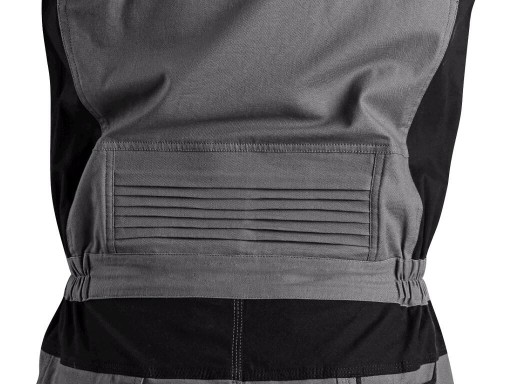 Wysokiej jakości, przewiewny kombinezon roboczy z dużą ilością kieszeni. Tkanina STRETCH (bawełna o splocie canvas + 2% elastanu) zapewnia maksymalną swobodę ruchu przy jednoczesnym zachowaniu bardzo dużej wytrzymałości na czynniki zewnętrzne. Miejsca najbardziej narażone na przedarcia dodatkowo wzmocnione tkaniną poliester 600D. W pasie elastyczne wstawki pozwalające idealnie dopasować odzież do ciała. Na plecach zapewniona wentylacja.