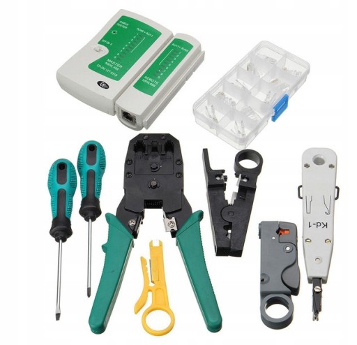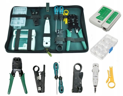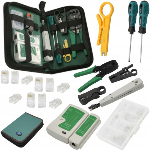 Podręczny zestaw dzięki któremu jest możliwe testowanie starych lub tworzenie nowy lokalnych sieci komputerowych LAN. Komplet wyposażony jest we wszystkie niezbędne narzędzia potrzebne do prac przy sieci internetowej w domu i biurze.
