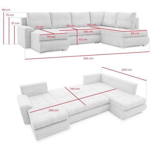 Trzy pojemniki pod siedziskami to miejsce, w którym możesz przechować pościel i inne przedmioty. Siedzisko wypełnione zostało wysokiej jakości pianką poliuretanową oraz sprężyną falistą co sprawia, że mebel jest jeszcze wygodniejszy. Zaokrąglone brzegi narożnika oraz efektowne nóżki nadadzą Twojemu salonowi charakter.