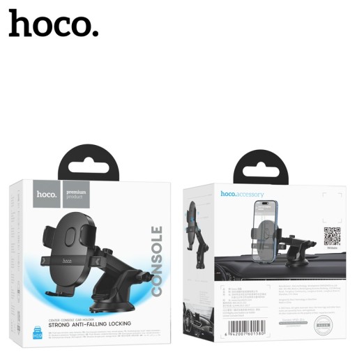 hoco. H19 Mighty to samochodowy uchwyt zaciskowy do telefonu / na telefon, z przeznaczeniem do montażu na deskę / kokpit / Konsolę / szybę pojazdu, wyposażony w regulowane ramię, dające nieograniczone możliwości regulacji i dostosowania do własnych potrzeb kierowcy oraz przegub kulowy, mocowany za pomocą przyssawki silikonowej z zaciskiem, przeznaczony do telefonów komórkowych / smartfonów lub tabletów o wadze nie większej niż 0,5 kg i wielkości wyświetlacza od 4.5 do 7 cali. Uchwyt posiada dodatkowo regulowane stopki dolne.