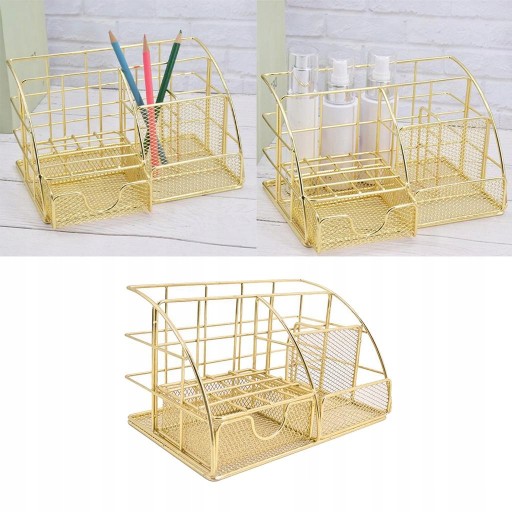 Siatkowy Organizer Na Z Szufladą Domowy Pojemnik Na Długopisy Złoty