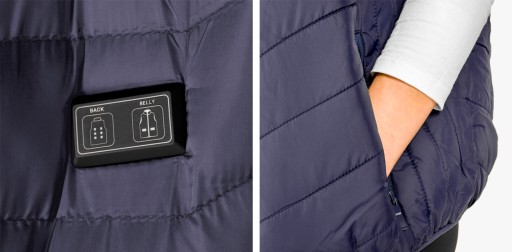 Optymalne rozmieszczenie wkładów grzejących sprawia, że kamizelka zapewnia przyjemnie ogrzanie całego tułowia: