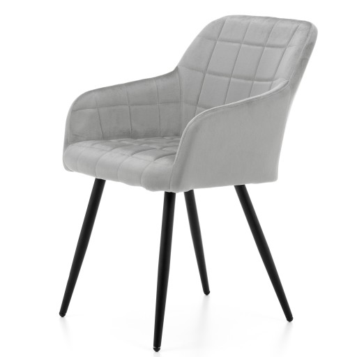 Wykonane z najwyższej jakości surowców. Siedzisko oraz oparcie pokryte jest tkaniną welurową. W krześle zastosowano nogi metalowe malowane proszkowo w kolorze czarnym, które dają niepowtarzalny efekt w każdym mieszkaniu. Nogi mają zabezpieczenia przed uszkodzeniem paneli podłogowych, drewnianych podłóg, powierzchni lakierowanych i podłóg ceramicznych.