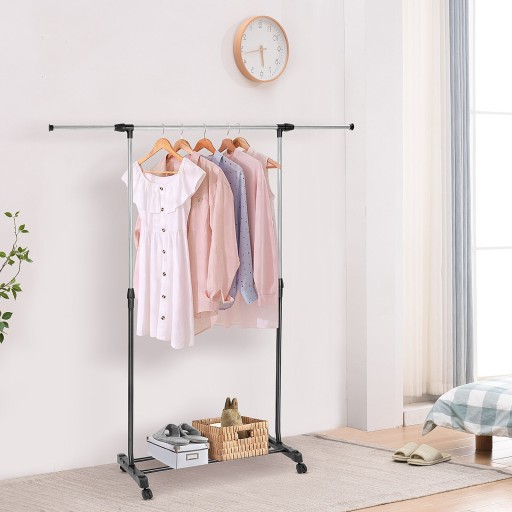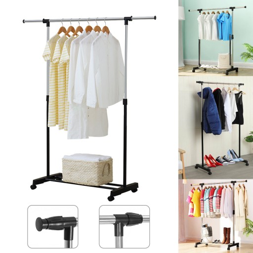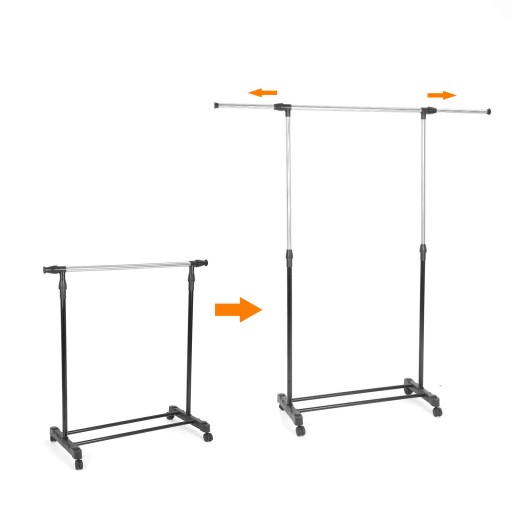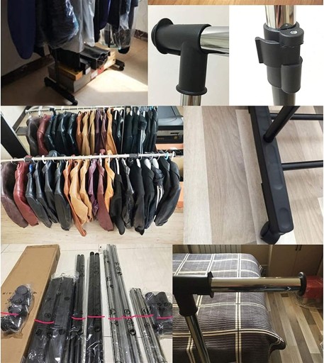 👔4 elastyczne kółka do przesuwania – dzięki 4 elastycznym kółkom wieszak na ubrania można łatwo i łatwo przesuwać. Koła z hamulcami mogą stać stabilnie na podłożu.