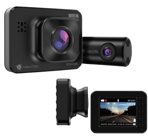 NAVITEL R250 DUAL to kompaktowy wideorejestrator wyposażony w dodatkową kamerę tylną.
