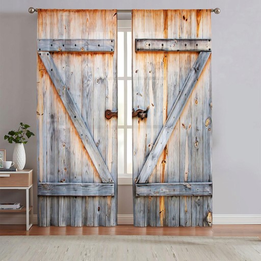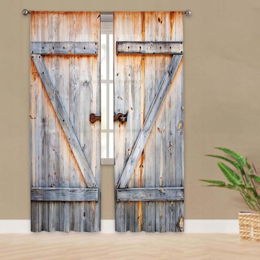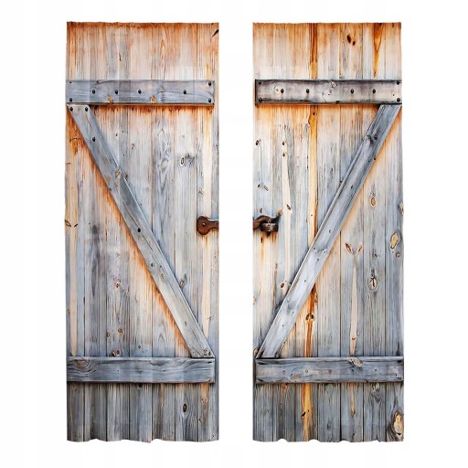 RUSTYKALNE ZASŁONY: 2-panelowe zasłony do drzwi stodoły, realistyczne nadruki na drzwiach intuicyjnie pokazują wiejski wiejski styl.