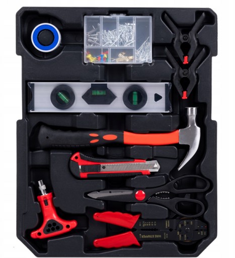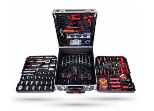 - W walizce znajdziemy między innymi klucze kombinerki śrubokręty imbusy szczypce młotek poziomicę końcówki nasadowe i wiele innych akcesoriów narzędziowych.