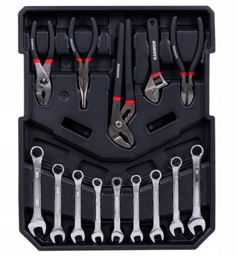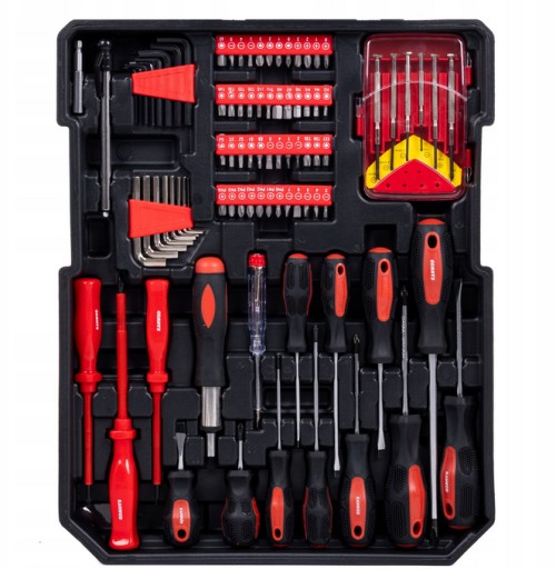 - Wygodne 4 wyjmowalne organizery grupujące narzędzia wg typu pozwolą na utrzymanie porządku i zapewnią łatwy dostęp do elementów zestawu.
