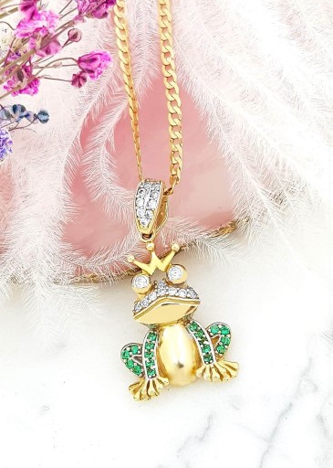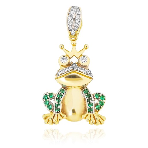 ЗОЛОТОЙ КУЛОН-ЛЯГУШКА С ЦИРКОНИЕМ, ЗОЛОТО 585 ПРОБЫ