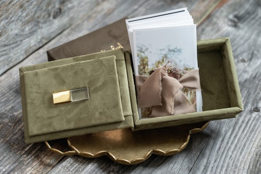 Aksamitne, welurowe, nubukowe pudełko na zdjęcia 13x18 cm, z personalizacją: grawerem lub stemplem + pendrive